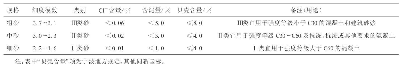 新國標《建筑用砂》(GB/T14686-2001)對原國標貝殼含量作了補充規(guī)定并從2002年2月1日開始實施,它對砂的分類與規(guī)格作出了新的規(guī)定,淡化海砂的控制指標如下圖
